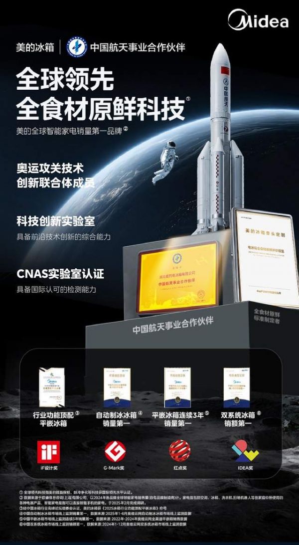 从让传统文化意境融入现代厨居,到守住各类山海风物的原鲜之味,美的冰箱始终以用户需求为核心,以技术创新为驱动,不断突破冰箱保鲜的技术边界。作为行业唯一中国航天事业合作伙伴,未来美的冰箱将继续深耕食材保鲜科技,推动保鲜技术智能化。当科技与美学共生,当家庭与星空共鸣,美的冰箱不仅是在守护每一份食材的原鲜之味,更是在为中国科技注入向上突破的磅礴力量。