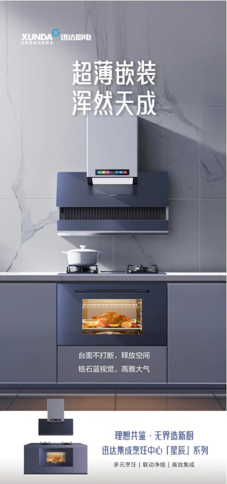 集成,并不是简单的结构一体化,而是整合厨电前沿科技、打破厨电产品之间的壁垒和传统厨房布局的前瞻之作。未来,迅达将继续推进厨电科研纵深发展,在技术研发、产品创新等方面深度发力,让迅达在空间智能化的趋势浪潮中,始终保持强劲的发展之势和领先地位,为构建理想的厨房生活场景注入了新的活力!