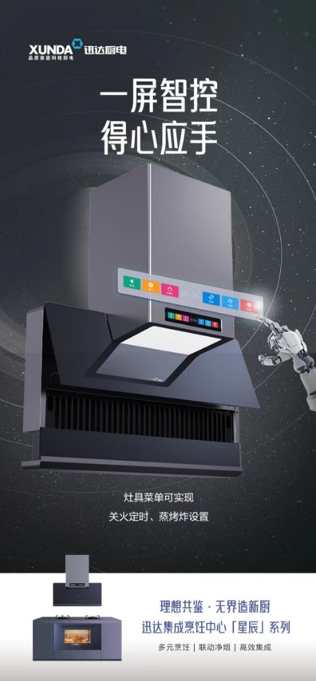 随着时代的发展,人们对厨电的需求早已不止基本烹饪功能,模块集成、智能集成、空间集成的多维统一的集成化厨电早已是大势所趋。迅达集成烹饪中心星辰系列的出现,一举解决了家庭烹饪的多个痛点问题,让就餐、亲子、社交、团聚等等,都在这方寸之间完成,让用户能在厨房获得更多的乐趣,为亿万家庭带来更便捷、更高效的烹饪生活。