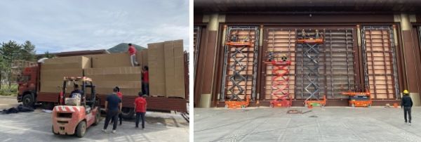 在木材方面,大不同团队确保木材的品质和数量,并追踪全球范围的木材供应链,进行了严格的筛选和检测,用材高达1300多吨。在生产高峰期,大不同团队组织了超500名员工分工合作,通过精密的时间管理和生产调度,保证了进度的顺利推进。每个环节都不计成本,以可贵的匠心点亮国家工程。