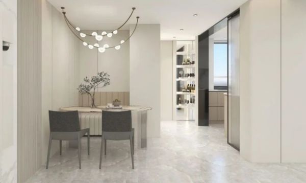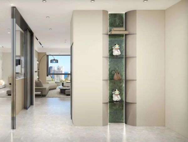 一进入家门,玄关处的设计给我留下了深刻的印象。玄关作为家的第一道风景线,是换鞋、整理仪容的重要区域。艾佳生活的设计师巧妙地将玄关柜打造成三合一的功能,不仅提供了充足的储物空间,还设置了穿衣镜和智能感应灯,给人一种宽敞明亮的感觉。玄关柜采用了亚马逊绿岩板和弧形设计,彰显了独特的个性和品位。穿衣镜的设计更是巧妙,可以随时随地实现虚拟换衣和智慧穿搭,为生活增添了不少乐趣。