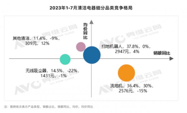 2023年1-7月清洁电器细分品类竞争格局/数据来源:奥维云网(AVC)全渠道推总数据