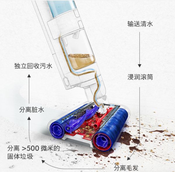 用过洗地机的人都知道,如果单纯依赖吸力来洗地,一股脑地把垃圾吸进去,非常容易导致干湿垃圾残留在管道内。长此以往,必然会造成管道堵塞。而混合的干湿垃圾更是顽固至极。它们并不好处理,黏腻而且非常容易卡在机器内部的犄角旮旯中,然后滋生细菌。所以很多人才会抱怨,买了洗地机还要“伺候”,还不如用拖把。