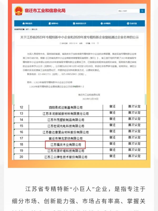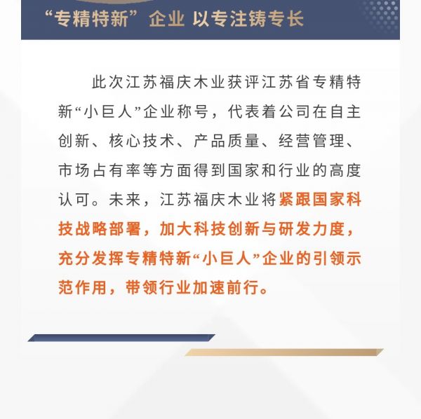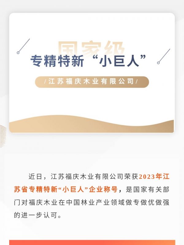网址: 载誉逐程|福庆木业荣获2023年江苏省专精特新“小巨人”企业称号 http://www.jiajubaike.cn/newsview101534.html