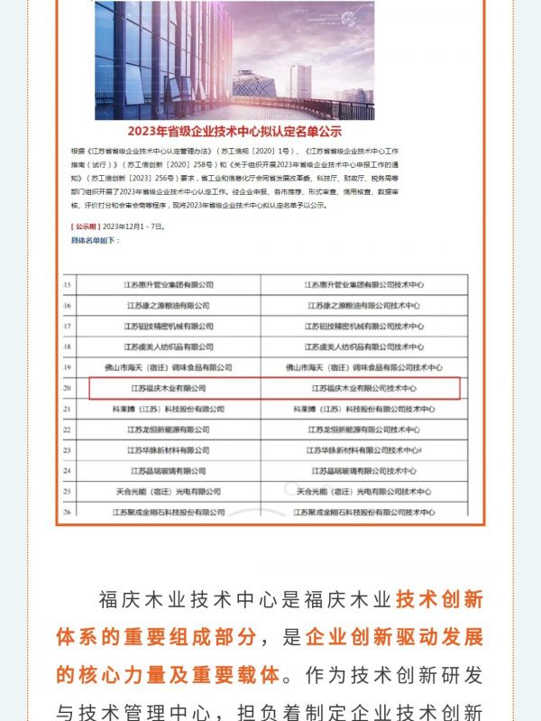 创新驱动发展|江苏福庆木业有限公司技术中心通过省级技术中心认定