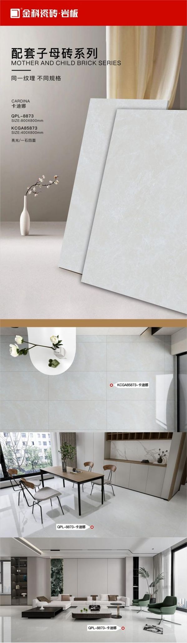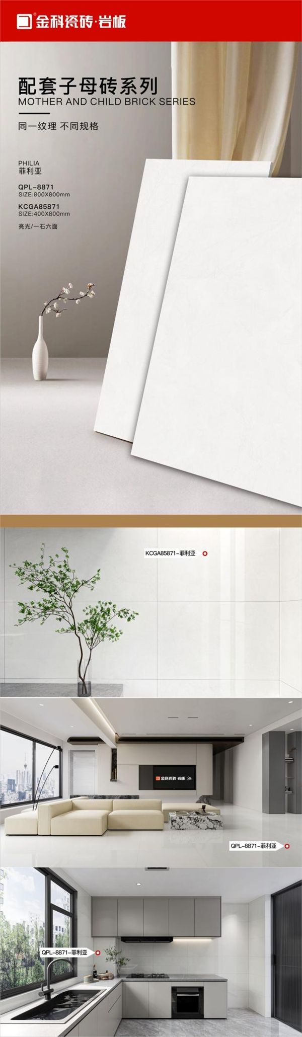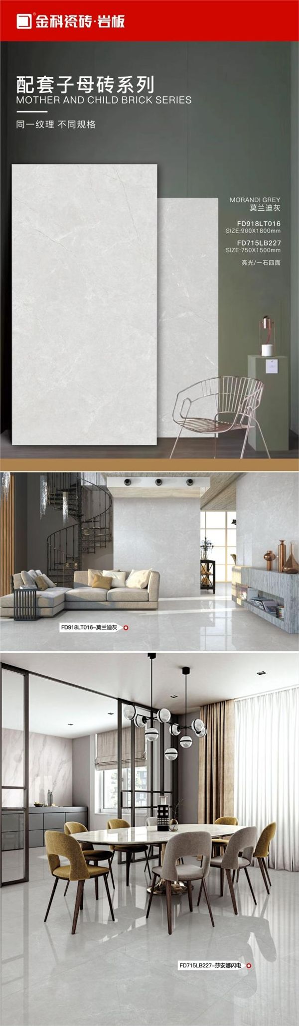 自从长方形大规格瓷砖推出后,这股潮流就再也没平息过。作为金科的常规产品系列之一,大板系列也推出了子母款。