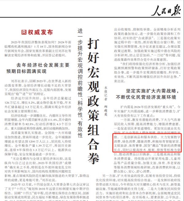 1月19日,发改委在人民日报撰文指出:“要积极培育智能家居、文娱旅游、体育赛事等新的消费增长点”,2024年的开年报道,为智能家居行业发展释放利好信号。
