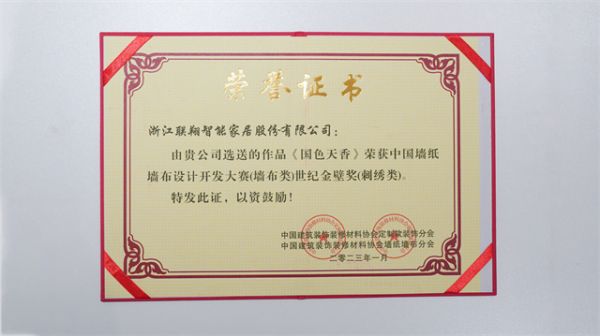 《国色天香》荣获2023年世纪金壁奖(墙布刺绣类)