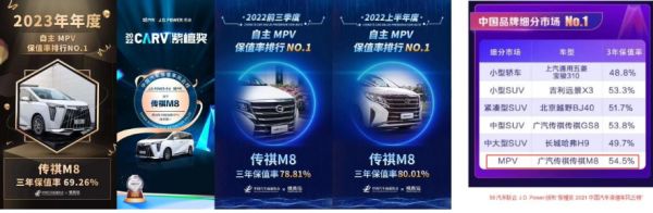 传祺M8连续多年在各大主流保值率榜单登顶细分市场TOP1