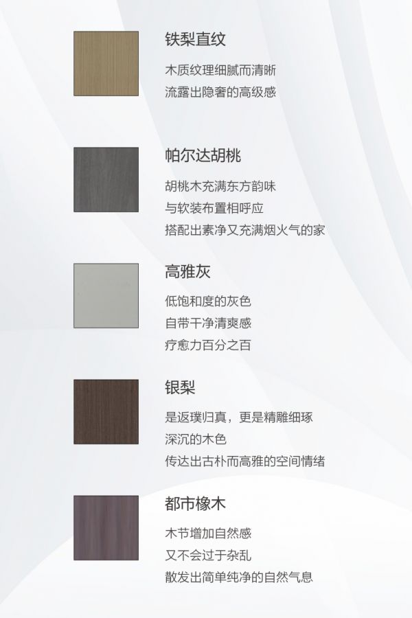 温润的木色作为主角,与冷冽的黑白灰完美糅合,把雅致与含蓄发挥到极致,演绎出现代风潮下的自然之美,将历史与现实重合,把欧式古典与中式气韵重组,传承对艺术精神和品质的表达。