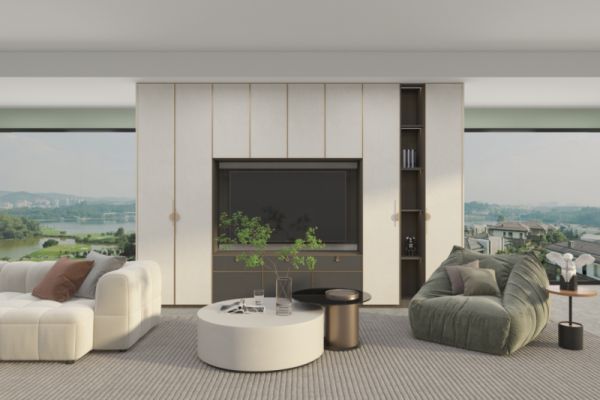 真正的品质生活,不仅是外在呈现的美感,更是直抵内心的尊崇礼遇,电视柜采用电动上翻门设计,面板可在任意位置悬停,柜内物品拿取方便,内置百隆阻尼,可轻柔关闭,开放柜与实门的搭配,可将常用物品及储藏物品分类归置,满足储物与展示功能,3200-3400k智能双色防眩灯,高显色,暖白色调,高灯效,有效减轻眼睛疲劳,呵护您的视力健康。
