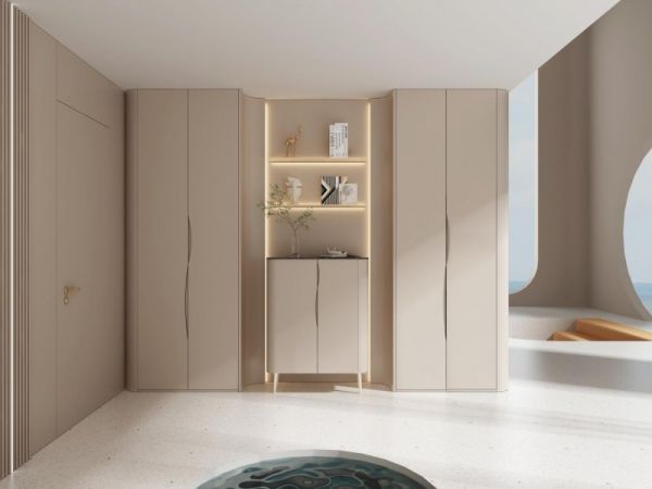 “一通到顶”设计,为衣柜提供了更多更灵活的选择空间。丰富视感,简化线的构图形式,将现代极简风格表现的淋漓尽致。设计师充分分析不同衣物的尺寸,舍弃多余繁琐设计,使用长短层板,科学分隔出不同的存放空间,有效利用空间多种组合自由搭配,让衣柜整洁不乱。