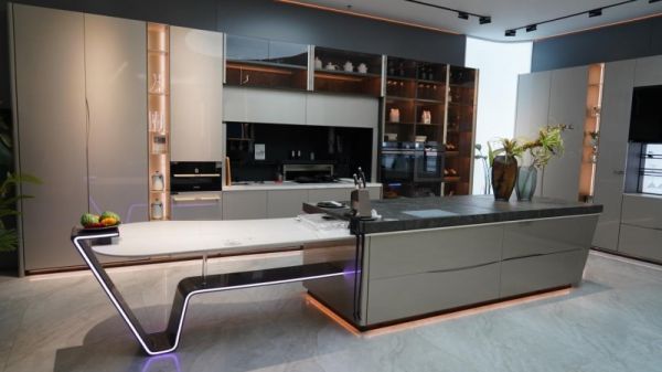 “小屋管家,启动做饭模式”,一声令下,厨房灯光自动调整为最适合的场景亮度,兼具无明火灶台、感应水龙头等操作区的隐形岛台开始工作。