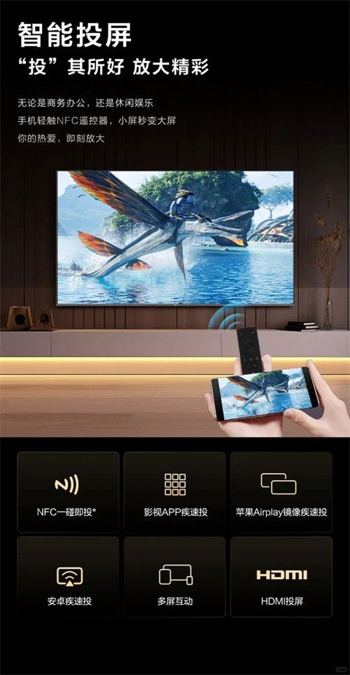 过年期间,各大电视频道滚动重播春晚节目也有点乏味,一家人还会因找不到想看的节目而无聊。而海尔电视大观系列A60创新NFC一碰投屏功能,用户仅需轻轻一碰就可以轻松共享屏幕,将手机上好看、好玩的精彩内容一键放大,解锁春节团聚全新大屏场景,而且配置2.4G+5G双频通道信号收发,较普通单频WiFi提高2.5倍,助攻投屏效率飞速提升,春节宅家的快乐不就蹭蹭蹭翻倍。