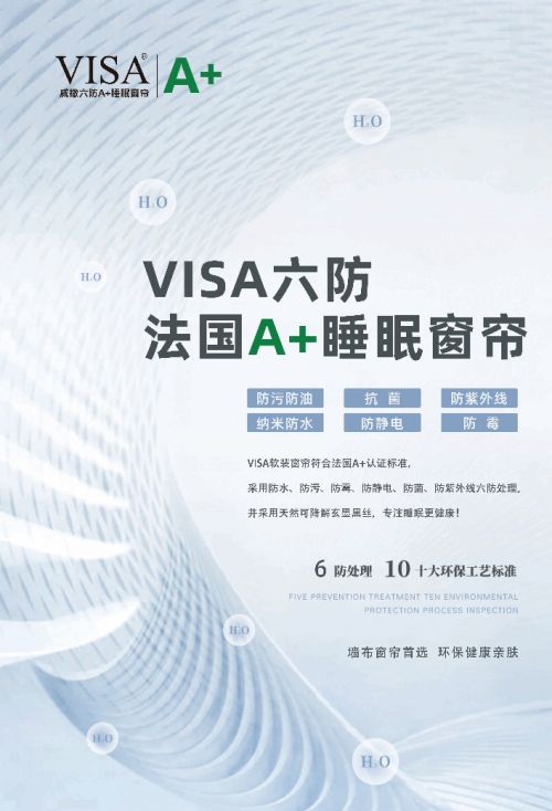 VISA高端软装一直致力于为消费者提供高品质、健康环保的家居产品。从窗帘到墙布,从艺术漆到墙板,从家具到饰品,VISA高端软装都力求做到精益求精。相信在未来的软装大家居市场中,VISA六防A+睡眠窗帘将成为引领潮流的重要力量,为更多家庭带来健康、舒适和美好的居住体验。