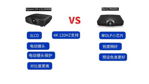 对比明基的W6000/ HT6550,这是一台去年刚刚发布的DLP机器,我还没有机会试用。这里我只能按照理论上进行判断。首先我们要知道DLP和爱普生3LCD机器,画面是完全不同的风格。DLP机器理论上有更好的锐利度,但具体也要看镜头素质。明基是单DLP芯片,它可以把出厂的预设调的很好。一般 DLP的机器对比度都不高,而明基这台高端机器对比度应该可以做到和爱普生差不多的水平。再者W6000使用的0.47寸的小芯片,芯片显然是一寸长一寸强。最后,W6000也不支持4K 120HZ,而这些都是12000B的强项。