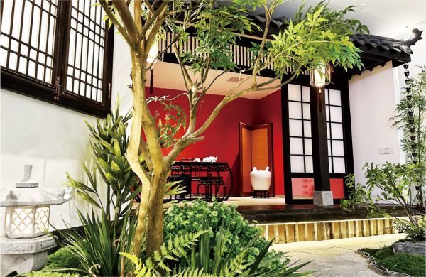 极具古典韵味的装修风格,融入了宋代建筑的精髓和特色。使建筑与自然巧妙融为一体,让设计回归自然。浅坐在门塌上,看着雨滴落下来,营造一种静谧、内敛、高雅的空间氛围。