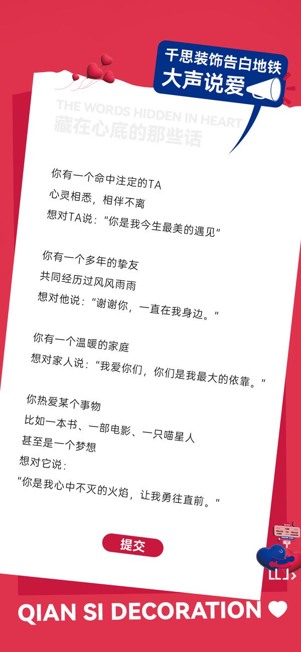 网址: 千思告白地铁520正式发车 | 征集爱的告白,全城浪漫见证 http://www.jiajubaike.cn/newsview106818.html