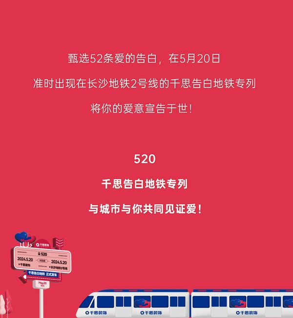 千思告白地铁520正式发车 | 征集爱的告白,全城浪漫见证