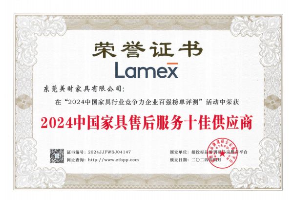 近日,招投标品牌调研公示服务平台经过严格评审正式发布“2024中国家具行业竞争力企业百强”等多个榜单结果,Lamex 美时凭借深厚的专业累积、卓越的行业视野、领先的智造实力、创新的设计理念、优质的产品服务以及可持续发展的经营理念深受认可,荣登“2024中国家具行业竞争力企业百强”、“2024中国家具供应商十大领军品牌”、“2024中国家具行业十大质量放心企业”、“2024中国家具售后服务十佳供应商”、“2024中国绿色环保家具十大领军品牌”、“2024中国智能办公家具十大品牌”以及“2024中国办公家具十大品牌”,再次成为各界关注的焦点。