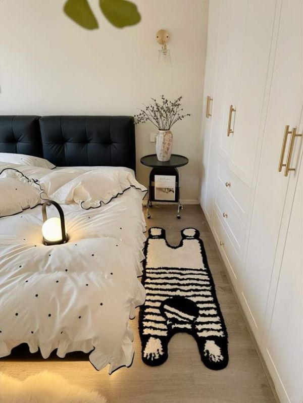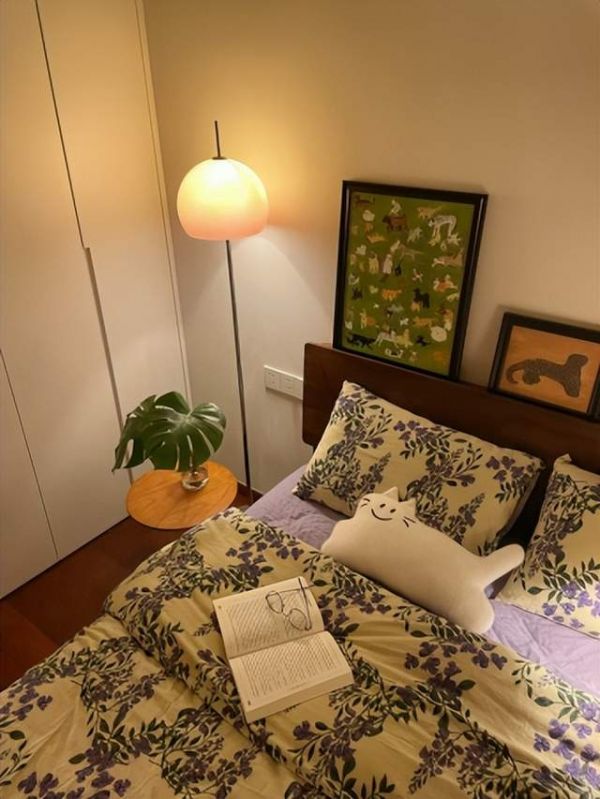 1、增加空间层次。你们家的卧室是不是跟这个一样,明明什么都有了,但是还是觉得缺了点什么?家具全部都在视平线以下。没有丰富的层次何来氛围呢?这个的解决方法,是要给空间增加有高度的软装。如落地灯、或是装饰画,有高度的家具都可增加,进一步提升空间的立体感