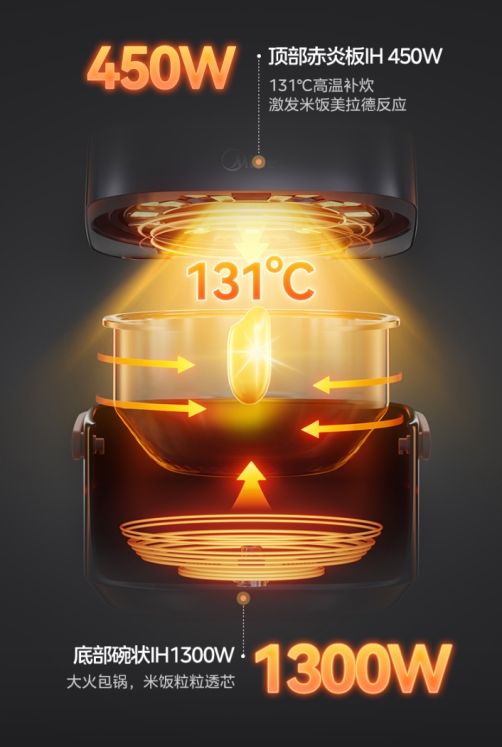 此外,美的赤炎臻香·钛0涂层电饭煲搭载了美的首创的赤炎双热源IH专利技术,创新顶部IH加热技术,搭配底部碗状IH加热,上下双IH热源对米粒形成赤炎包裹式IH加热,充分促进淀粉转化,米饭口感更香甜。同时,该款电饭煲还在顶部和底部创新定制了双段独立烹饪曲线,实现锅内全维立体环流加热,专业级激发米饭深层香气,开盖瞬间米饭香气扑鼻,让每一位用户都能享受到“香、甜、松、糯、润”的五星好米饭。
