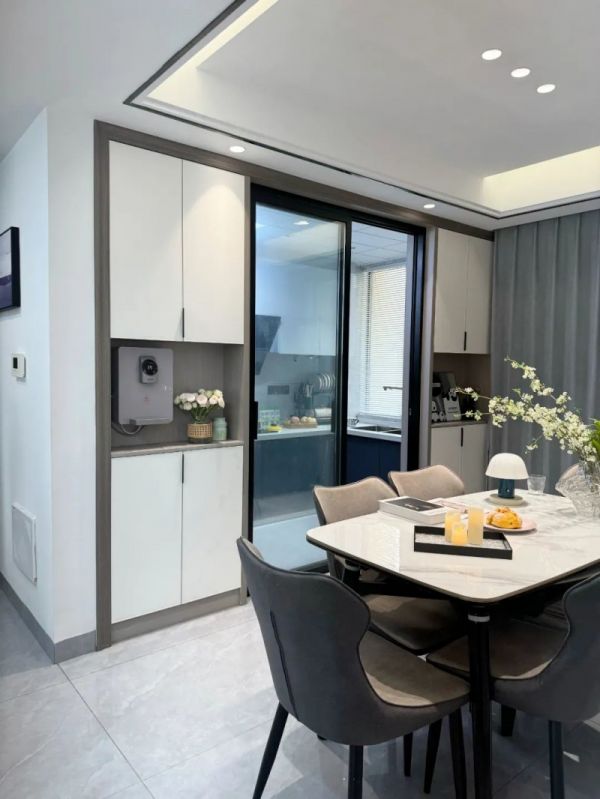 博主家受房型限制,想做餐边柜的地方面积小不够做满墙,是厨房墙面打掉做的柜子。福庆设计师专业一对一设计,整体使用下来,柜子的收纳能力很强,不占空间更加美观。