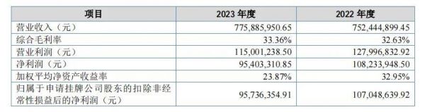 近年来,玫瑰岛营业收入整体保持稳定增长态势。2023年和2022年的营业收入分别为77,588.60万元和75,244.49万元,2023年度营业收入较2022年度同比增长3.12%;综合毛利率分则别为33.36%和32.63%;净利润方面,对应的则分别为9,540.33万元和10,823.39万元。玫瑰岛表示,2023年度公司净利润较2022年度同比下降11.85%,主要由于2023年度公司销售费用、管理费用及财务费用较2022年度均有不同幅度的增长所致。