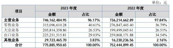 按销售方式来看,玫瑰岛的业务主要分为零售业务、大宗业务和出口业务三大板块,三大板块业务收入占比较为均衡,抗风险能力较强,特别是零售业务,2023年收入同比上升了13.82%。