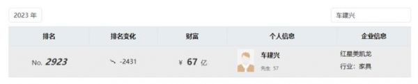 然而不到5年,车建兴财富就缩水至67亿元,到了今年,他甚至都够不上胡润富豪榜的门槛(10亿美元)。