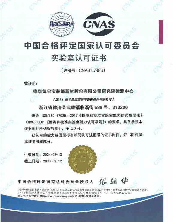 检测中心从“人、机、料、法、环”等要素全面加强能力建设,全面保障检测技术水平。CNAS认可的检测能力范围涉及11个检测对象,覆盖67项关键项目参数。CNAS认证作为中国最具权威性的实验室认可体系,其建立严格遵循ISO/IEC、IAF、ILAC和APAC等国际组织发布的标准、指南和其他规范性文件,以及我国相关的法律法规和CNAS发布的认可规则、准则等文件,旨在全面评估并确认实验室的技术实力、管理体系的完善性以及服务质量的卓越性。获得CNAS认可,意味着兔宝宝检测中心在检测硬件设施设备、检测技术能力和实验室管理水平等方面均达到国家(际)级认可标准。同时,该认可也对兔宝宝产生了极大影响与价值,不仅极大提升了兔宝宝品牌的市场公信力和行业地位,更为其在全球市场中树立了质量卓越的标杆,有效增强了国际市场的竞争力。最重要的是,这一成就持续激励着兔宝宝检测中心向前迈进,推动其不断优化检测流程,强化技术创新,提升服务品质,以确保为消费者提供更加安全、可靠、高质量的产品检测与保障服务。这一过程,不仅是兔宝宝对自我卓越的不懈追求,更是其对行业责任与社会担当的深刻践行。