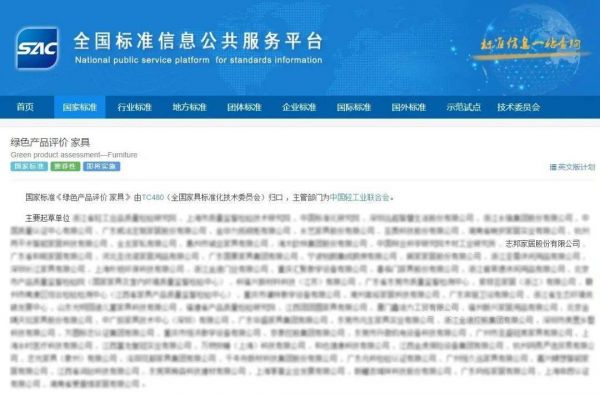 据悉,《绿色产品评价 家具》标准细化修订了家具制造过程中“能源”和“低碳”两方面相关指标,将引导企业依据标准开展家具领域绿色设计、生产、评价工作,促进家具领域绿色转型升级。而《家具中有害物质限量》标准则规范了各类家具中有害物质限量要求,为消费者打造健康绿色家居环境提供有效保障。《家具结构安全技术规范》在保障家具使用者的人身安全方面起到重要技术支撑作用。