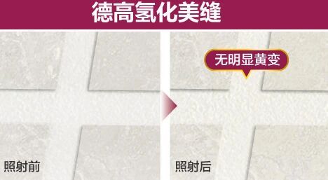 所以,想要室内美缝达到理想的耐黄变效果,建议选用氢化美缝剂。德高氢化美缝剂通过加氢升级处理,将不稳定的苯环结构升级为稳定的脂环结构,令美缝剂的抗氧化性能大幅提升,真正做到“锁色如新”。