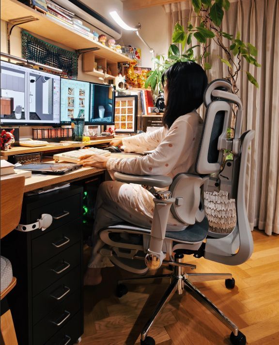 从实测反馈来看,爱果乐 V3 Apex 的适配性非常强,无论是高个子还是矮个子,无论是设计师、程序员还是自由职业者,都能在这款椅子上找到舒适的坐姿。