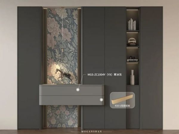 今天小莫为大家介绍莫干山门墙柜配套产品中的圆弧板。市面上常见的圆弧线条,其最大弧度通常只有100°左右。当柜体、墙面等需要处理更大转角时,圆弧板无疑是你的不二之选!