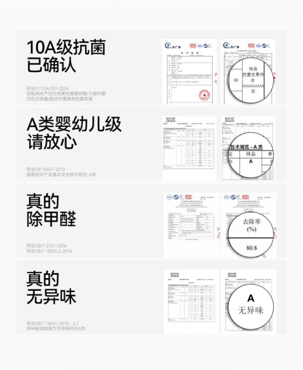 要特别注意的是,抗菌效果升级,绝对不能牺牲基础的安全性。三千金在升级【千金盾】10A 技术时,核心面料依然严格通过了“老爸抽检”的 138 项严格测试,确保没有甲醛、没有致癌染料。里面的抗菌成分也经过了严格挑选,安全又环保,不会给家里带来新的健康问题。