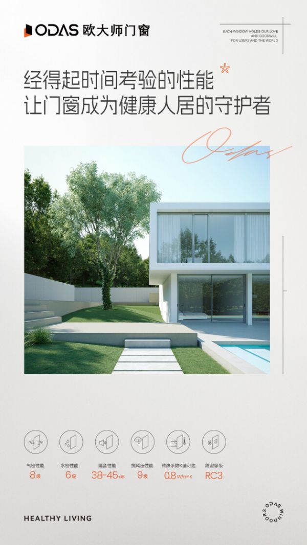 欧大师门窗是门窗行业内首个加入IWBI并通过了WELL产品授权的企业,始终同频全球最高健康标准。品牌将WELL健康建筑标准转化为切实可行的技术语言,为用户提供可感知的健康解决方案。