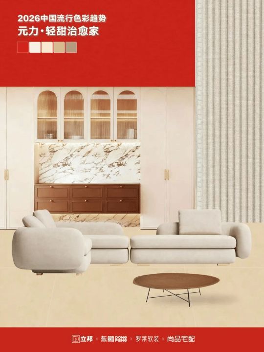 对合作伙伴而言,共创意味着共享趋势红利与降低研发风险。各品牌无需投入巨额成本进行独立的前瞻趋势研究,而是将自身成熟的专业体系与“元力红”趋势精准对接:譬如东鹏瓷砖凭借其在材质与工艺上的深厚积淀,通过“尊石系列”、“净奢石系列”、“尚木系列”、“岩萃系列”、“微韵石系列”等产品,将色彩趋势转化为可靠的空间基底;尚品宅配通过其“全屋风格化”产品矩阵与AI设计系统,实现了趋势色彩在具体户型中的快速落地与规模化应用;罗莱软装则以其覆盖八大品类的丰富产品线,为空间提供最终的情绪点缀与氛围升华。这种基于各自专业优势的协同,不仅为消费者提供了从灵感、设计到落地的完整美学闭环,也为各品牌带来了联合曝光与开拓新商业机会的广阔空间。