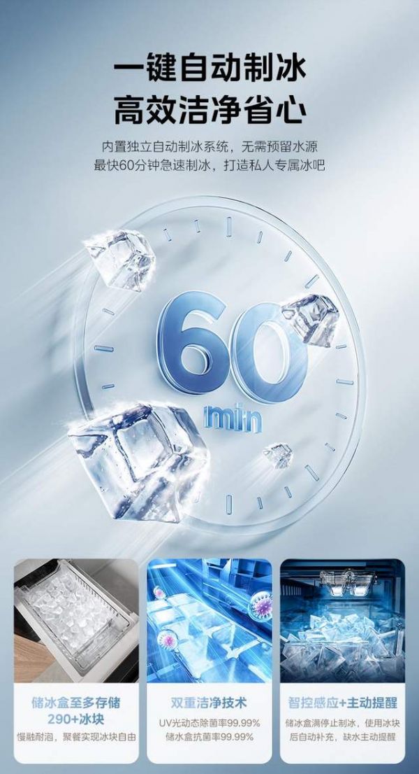 用户对于制冰需求的增长,曾长期伴随着“冰块是否干净”的深层焦虑。传统冰箱制冰过程漫长,且模具、储冰盒易成为细菌温床;部分冰箱产品为追求制冰速度,牺牲了卫生保障,导致用户体验参差不齐。