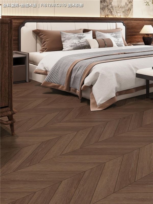 600×1200mm的鱼骨拼纹理,自然灵动不呆板。丝绒光感就像在普通柔光砖的基础上做了升级,视觉感特别柔和舒适,触感细腻细节满分。