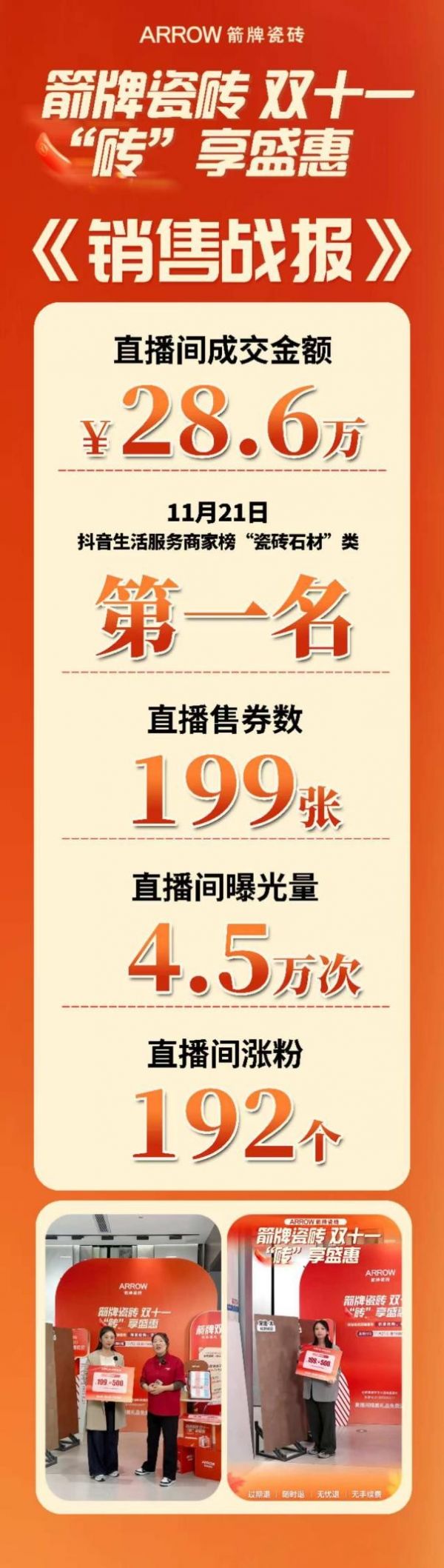 携手箭牌,领跑市场|箭牌瓷砖2024年“双十一”大促圆满落幕