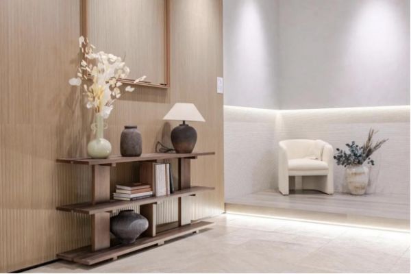 “当代仿古 经典未来”紧扣2025年度优雅治愈的流行色彩趋势——摩卡慕斯,用AI技术、数字釉面工艺及最新AI 数码微浮雕科技,解构并重构敦煌雅丹的粗粝质感、威尼斯水城的柔光色调等经典元素。同时,提炼东方美竹、韵律长笛、时尚罗纹等 3D 立体纹理,再现自然造化下的自然质感与细腻效果,让用户享受视觉、触觉、质感的空间三重奏。
