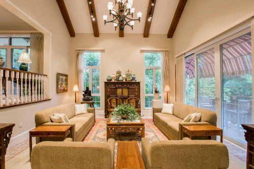 硬装定调休闲美式风格,以深橄榄黄色系为主色,保留原建筑造型并优化美观度与实用性,将古旧家具与现代西式家具搭配,实现中西合璧,营造出兼具现代感与古典美的空间氛围。