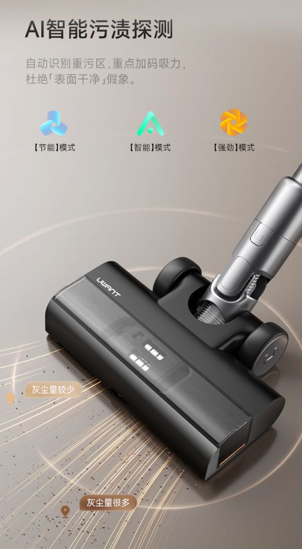 在清洁效率维度,150° 巨幕绿光显尘技术可识别 0.01mm 微尘,床底、沙发底、踢脚线等死角灰尘无所遁形,避免无效清洁,清洁效率提升 40%;搭配四大场景刷头(0缠扫震地刷、防缠除螨刷、宠物刷、四合一扁吸),一秒切换无需找配件,从地板到窗帘、从床褥到键盘,全场景清洁不耽误,大幅缩短清洁耗时,符合 “高效显尘、不易堵塞” 的效率标准,让清洁快速收尾。