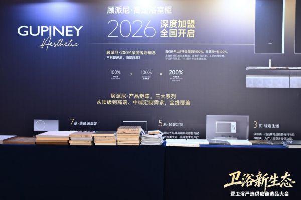 在众多参会品牌中,作为杭州产区卫浴高定代表的顾派尼卫浴无疑是焦点之一。作为大会联合主办单位,顾派尼卫浴创始人郑斌带来主题演讲《轻高定浴室柜如何逆势生长》,以细分赛道突围的实战经验,为行业破解同质化难题提供了全新思路。演讲中,创始人提出“轻高定不是高端材质的堆砌,而是精准满足中产家庭品质需求的性价比解决方案”,这一理念与当前高端卫浴逆势增长的市场趋势高度契合。