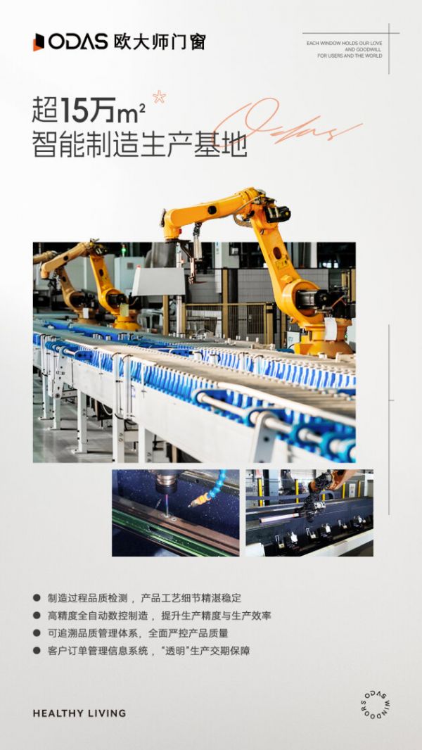卓越的产品性能需要精密制造体系的支撑。欧大师门窗布局了现代化生产基地约15万平方米,从规划开始就以工业4.0为整体发展方向。