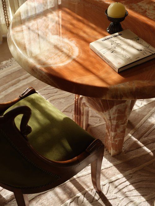 客厅中的红龙玉玉石茶几,为空间注入恰到好处的奢华质感;餐厅里的白雪公主玉石台面,定义了居者生活品质的全新基准;海外画廊甄选的艺术家原作,确保了“法式腔调”的原真与独特;手工编织地毯与中古烛台,呼应着左岸文艺精神……