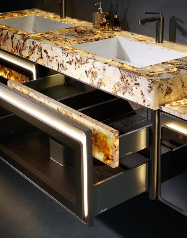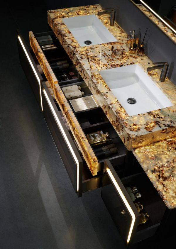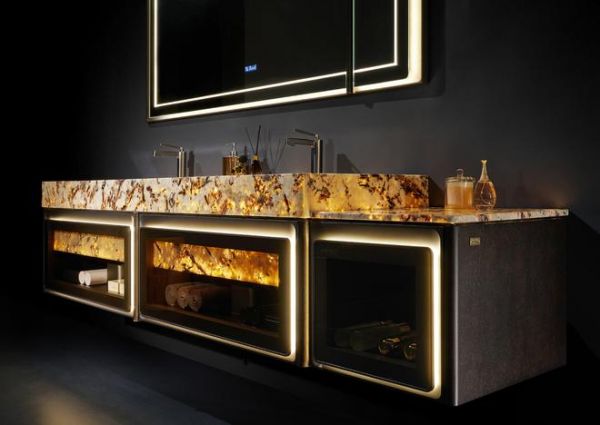 云珀系列浴室柜的创作,体现了阿洛尼对材质、功能与美学的深度整合,将自然灵感与时尚感完美交织,重新定义高端卫浴空间的现代奢华格调。