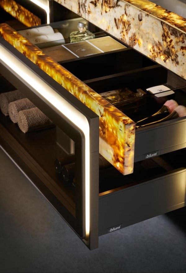 精选进口珍稀木材与天然奢石,通过匠艺打磨呈现珠宝级光泽,在光影流转间散发低调而奢华的时尚气息。创新性的复合式多功能抽屉系统,将玻璃抽面与抽中抽设计巧妙结合,实现了空间利用、使用体验与视觉美感的全面优化。