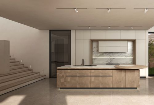 在这一框架下,FotileStyle的智慧全屋高端定制解决方案展现出非凡的适应性。房屋的不同功能区域完美适配其不同的产品系列:书房和西厨区域采用慕士塔格谷雨系统,而茶室巧妙地运用了慕士塔格观山的造型语言,东方美学的现代转译,奠定了整个家庭精神休憩所的高雅基调。这种针对不同空间气质与功能需求的精准产品匹配,使得FotileStyle不再是外来的“家居产品”,而是从空间肌理中自然生长出来的有机部分,完美契合了“融入自然”的整体设计调性。